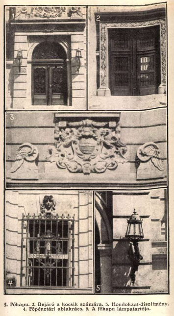 | „A főépület ötemeletes, magastetős és középfolyosós építmény, ami összekötő szárnnyal kapcsolódik az alacsonyabb, oldalfolyosós rendszerű és jóval egyszerűbb melléképületekhez. A páternosztert, a körülötte forduló háromkarú főlépcsőt és a lifteket a főbejárat tengelyében helyezték el, az utcai és az udvari szárny csomópontjában. Az Akácfa utcai főhomlokzat hármas tagolású, de az átépítések során további három tengellyel bővült. Közepén a hét tengelyes, rusztikus pillérekkel tagolt középrizalit emelkedik ki, amelynek centrumában a főkapu áll. Az első és a második, illetve negyedik és az ötödik emelet között vízszintes hornyolású osztópárkány húzódik. A magasföldszint és az első emelet szintjét műkő burkolattal látták el, az erkély feletti részt pedig levakolták. A vörös műkőkeretes ablakoknál a felsőbb szintek díszítő elemei az álerkélyek. Így az épület egyfajta kompozit-barokk, sohasem volt, de lehetséges palotahomlokzatot alkot. Az épületegyüttes keretes kapuzatú, félköríves főbejáratát, két oldalán egy-egy szárnyas kerékkel, a főváros címere koronázza. Az eredeti épület bal alsó sarkában lévő kocsibejárót pedig az ornamentális díszítésű kőkeret felett elhelyezett, korona alakú foglalatban világító lámpa emeli ki. A főkapun belépve a dongával fedett, márványburkolatú lépcsőfeljáró és faburkolatú előcsarnok fogadja a látogatót. A páternoszter mellett balra indul felfelé a rózsaszínű műmárvány faburkolattal ellátott főlépcső, amelynek ívét sárgaréz fogódzó követi.” Az első emeleten található az ülésterem, a vezérigazgatóság, a titkársági iroda és a kistanácsterem. „Az épület negyedik emeletén van az erősen átalakított karzatos díszterem, amely eredetileg színes műmárvány falpillérekkel és egy vörös rácsozatú kandallóval fogadta a vendégeket.”