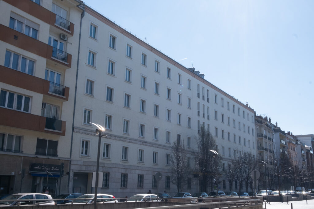 At 28–30 Bercsényi Street stands a unique building that differs in appearance from the other houses on the street. The building of the BME (Budapest University of Technology and Economics) Architecture Dormitory is one of the last examples of socialist realism—albeit in a simplified form—among the predominantly 20th-century modern-style residential buildings. The dormitory is built in a closed-block layout. The five-story structure, characterized by a strongly horizontal composition, features a restrained architectural design. The base is clad in artificial stone, and above it, the façade facing Bercsényi Street is segmented by evenly spaced, simply framed windows, except for the central axis.