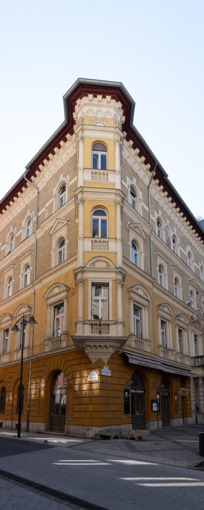 The four-story, neo-Baroque rental house stands on Lőrinc pap, formerly Scitovszky Square. The lady who commissioned the building was married to József Liebner of Kakucs, who served as an imperial and royal steward. In addition to operating a honey warehouse, Liebner also ran a tavern in the building, which stirred the sensibilities of the faithful attending the Jesuit church across the street, as well as the residents of the girls’ shelter next door. His monogram can be seen above the gate. The building, also known as the Darányi Palace, got its name from István Darányi, an influential liquor dealer who lived there from 1933.