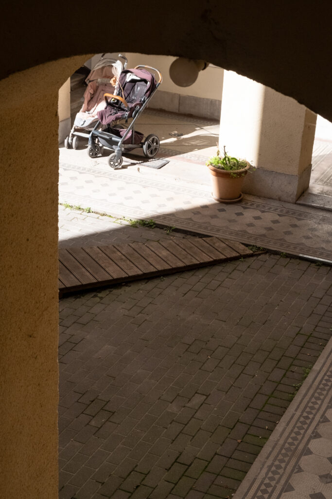 The geometric-based organic ceramic sculptures by applied artist Zsuzsanna Szűcs reinterpret the space as they appear to float in the building’s inner courtyard. In everyday use, the rich architectural heritage of the residential building at 3 Lőrinc pap Square, located in the Palotanegyed (Palace District), is often forgotten — its values become almost “invisible.” In recent decades, the relationship between built heritage and the natural environment has raised particularly important questions for city dwellers. The ceramic sculptures presented here by Zsuzsanna Szűcs offer a strong foundation for drawing attention to the natural environment, while also reflecting on the timely transformation of the urban landscape.