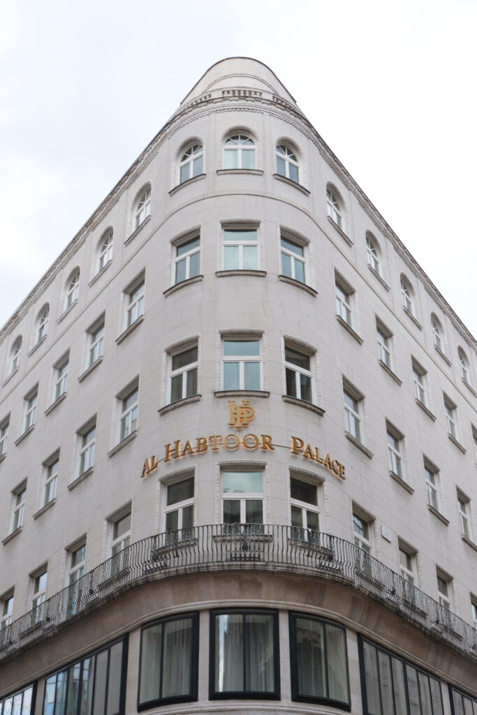 Épületbejárás az Al Habtoor Palace külső és belső tereiben.