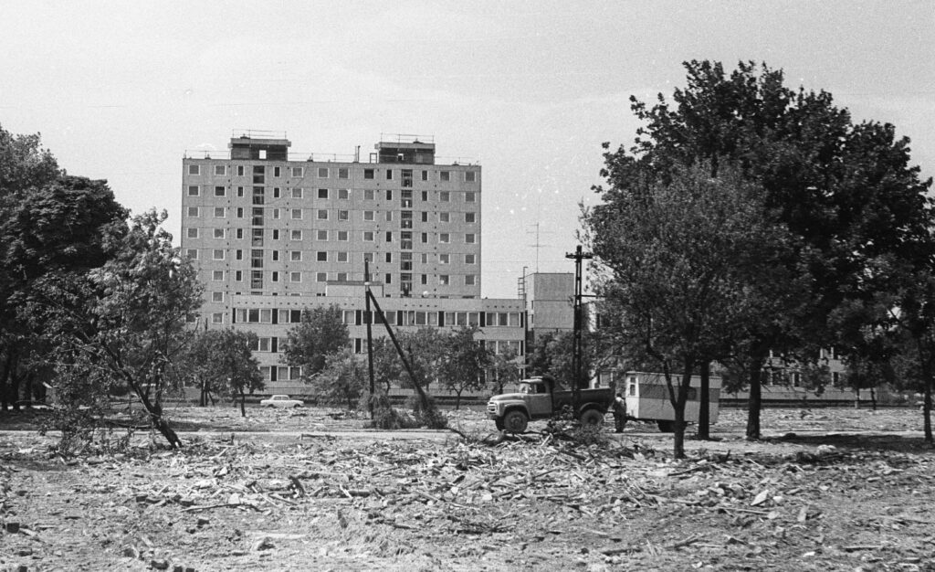 A Faludi utca 6/a-b, tízemeletes panel a Tomori utca felől nézve, 1979. Fotó: Fortepan /Angyalföldi Helytörténeti Gyűjtemény