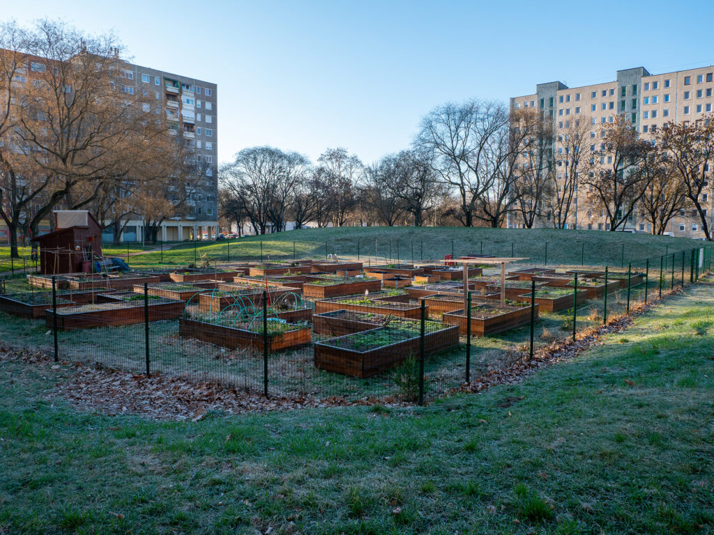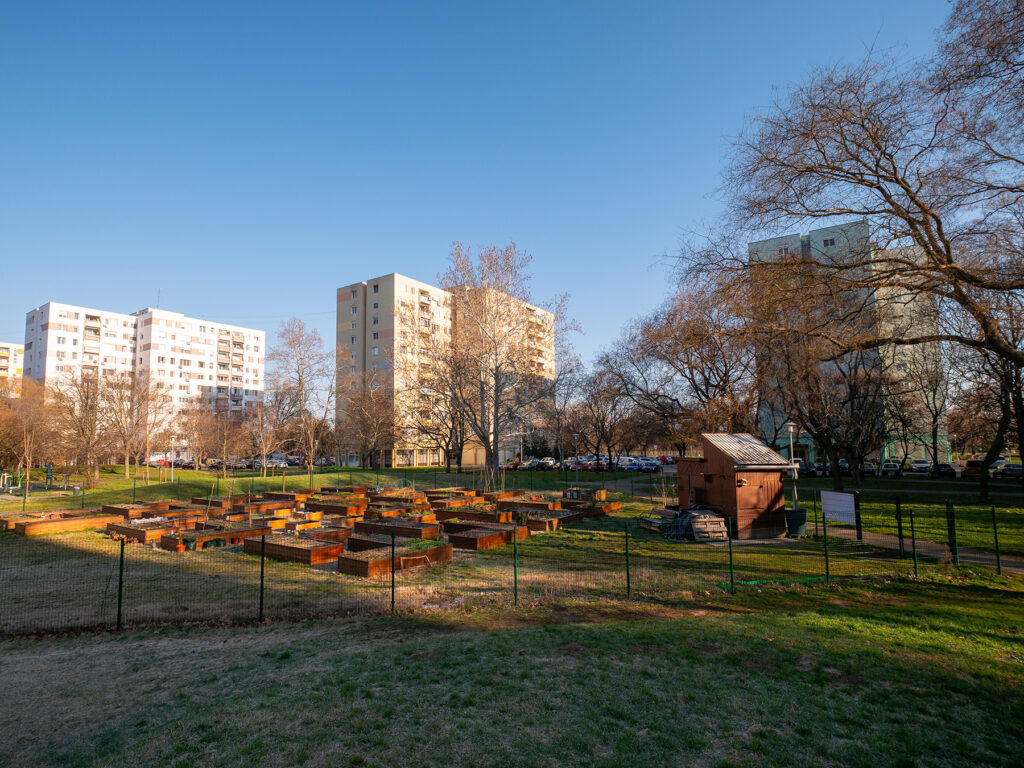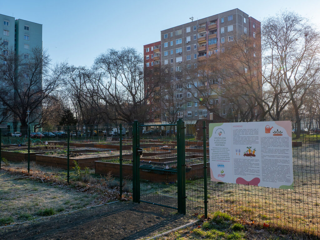 A paneltömbök sokasága között sétálva sejlik fel egy zöld színfolt Békásmegyeren. A Jós utcai közösségi kert egy önkormányzati felhívásra jelentkezve, másfél év szorgos szervezés után jöhetett létre 2023-ban. A várólista hosszú, nem könnyű bekerülni, jelenleg 26 lelkes kertészkedő használhatja az ágyásokat. Idén egy szezonon vannak túl, folyamatosan egymástól tanulva, együtt formálják és fejlesztik a kertet. Így valósult meg a közös málnás, a virágos sarok, és tervben van gyümölcsfa telepítése is.