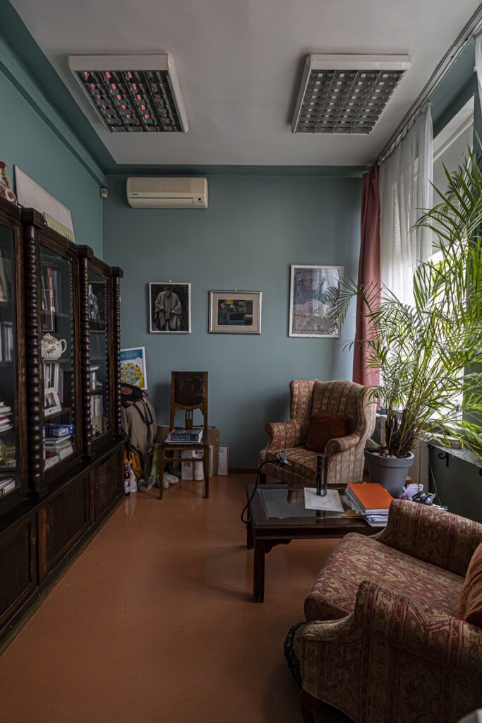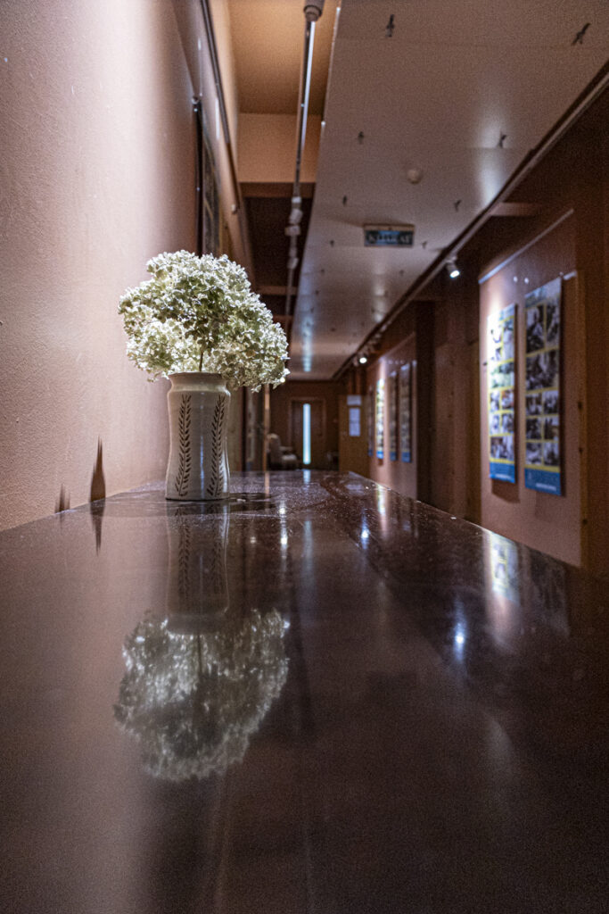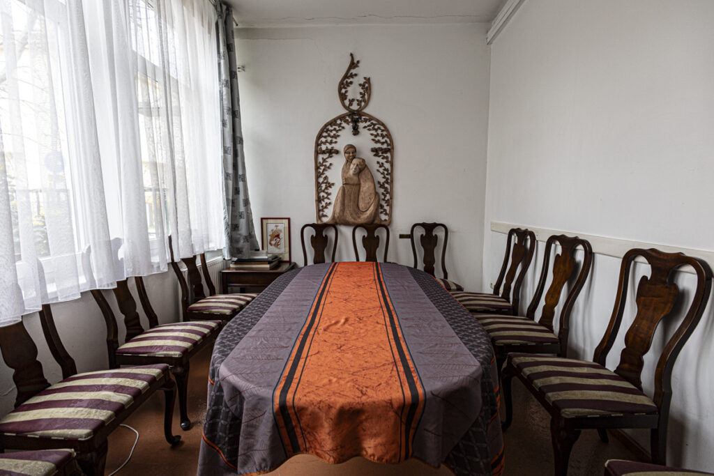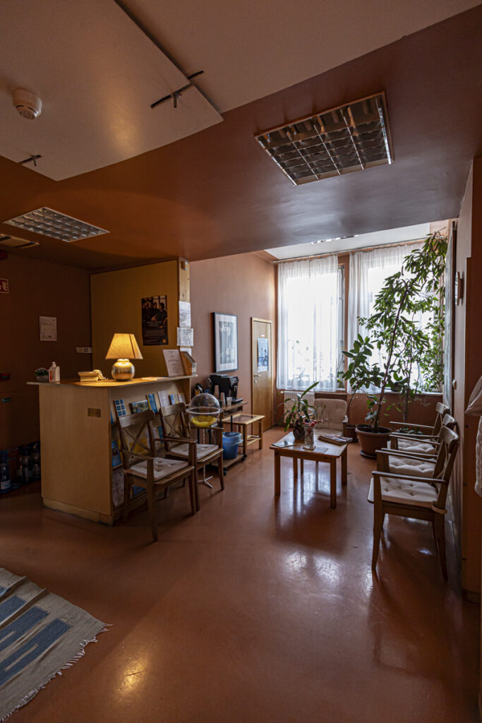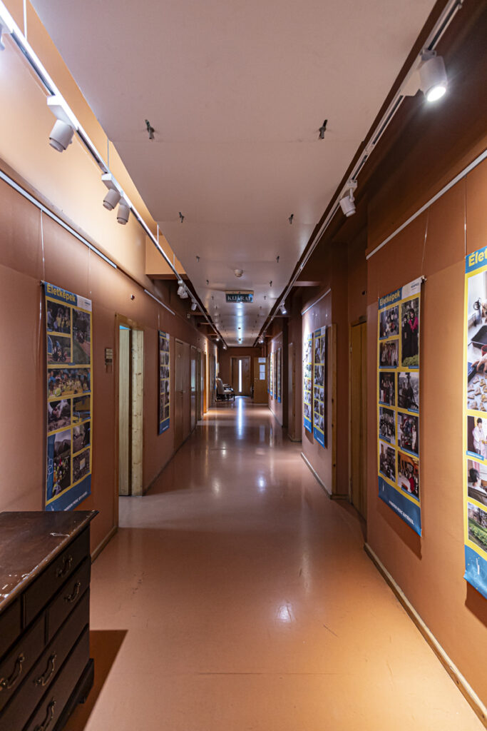 Budapest Hospice Ház életképek kiállítás a ház folyosóján.