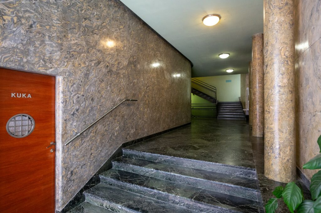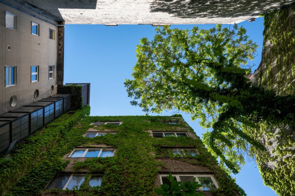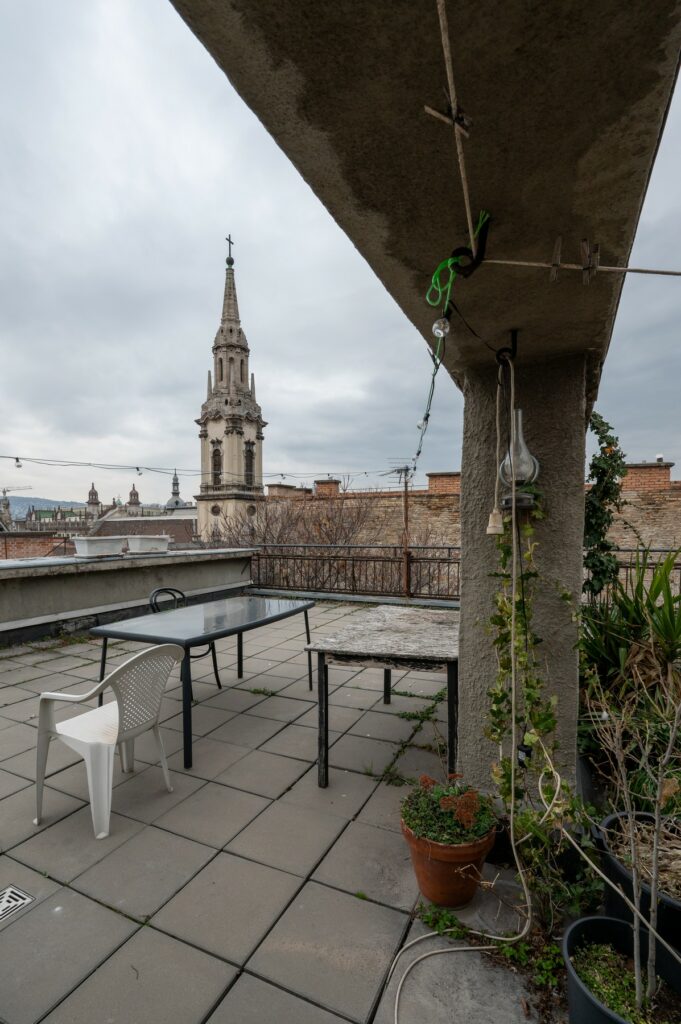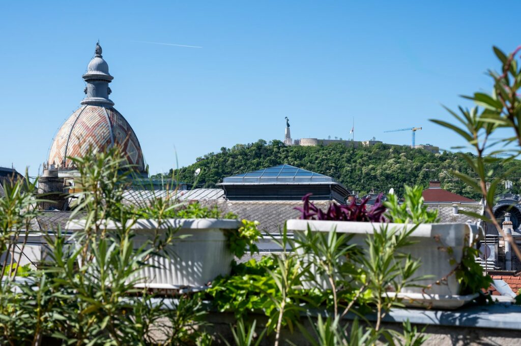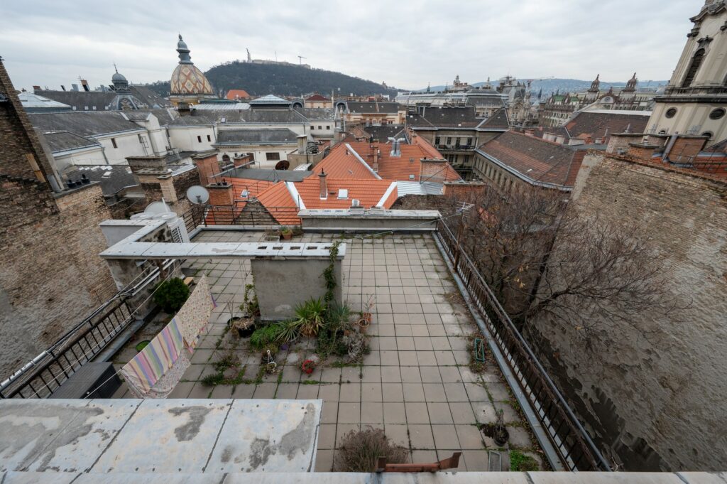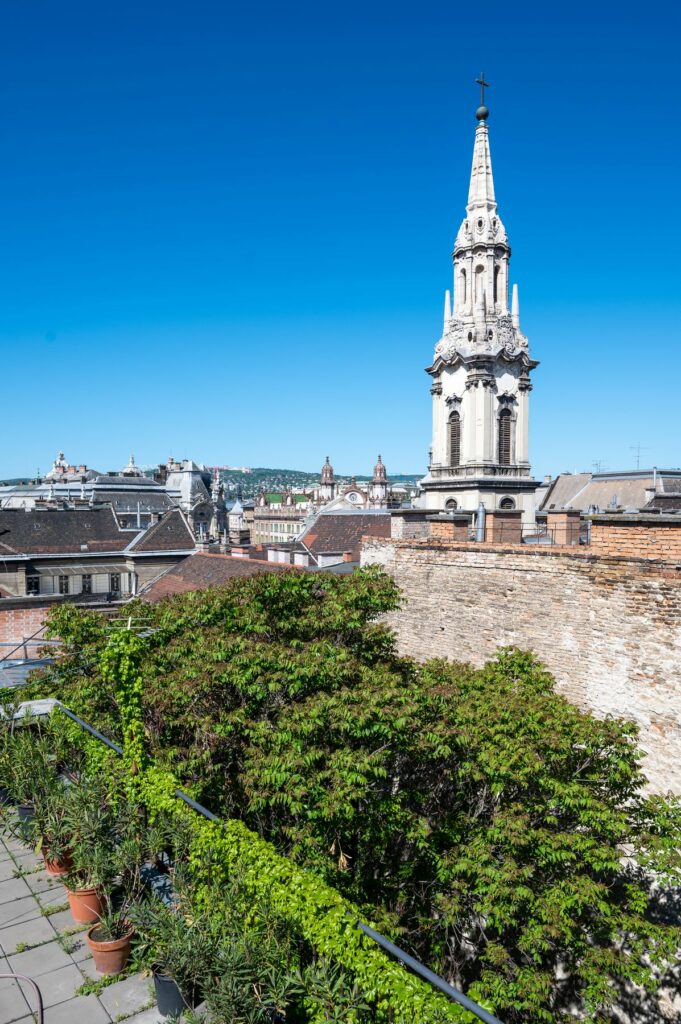 A hatemeletes lakóház a belváros szívében maga a történelem. A város zaját magunk mögött hagyva, a dísztelen kapun belépve egészen más világba csöppenünk: zöld márványborítású lépcsőház, eredeti faajtók, csengők, elegáns lakónévsor – minőségi anyagok és átgondolt, kidolgozott részletek. Burjánzó kert elzárva a kíváncsiskodók elől és csodás panorámát nyújtó tetőterasz – ki hinné, hogy az épület mennyi emléket őriz, zöld csodát rejt?