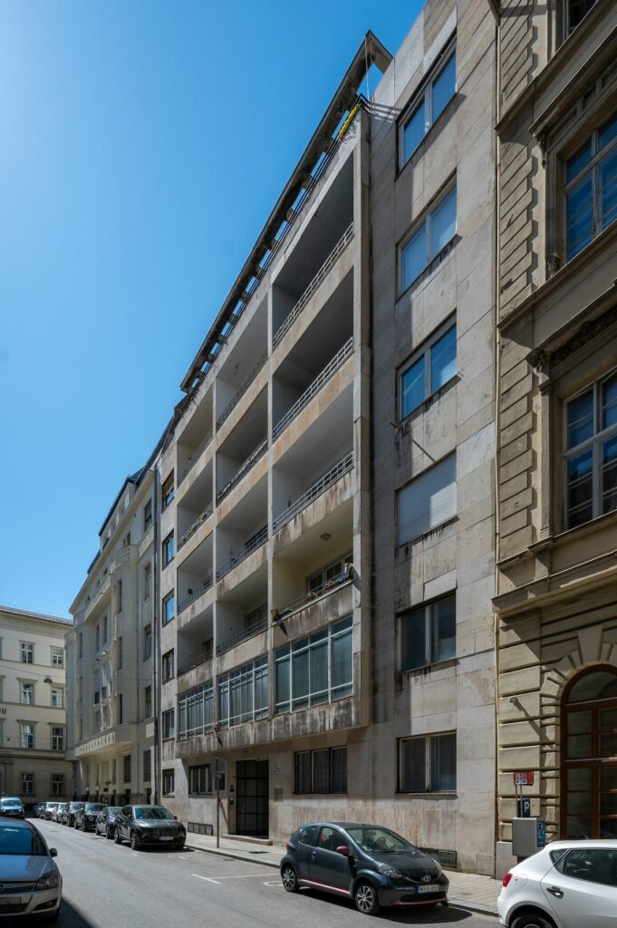 Funkcionalista bérház, amelyet travertin mészkővel burkolt homlokzata és impozáns belső tere tesz különlegessé. Nagyvonalú, kényelmes lakásai miatt sok főúr és tisztviselő lakott itt, akik emlékét megőrizte a jelenlegi lakók által nagy becsben tartott egykori lakójegyzék.