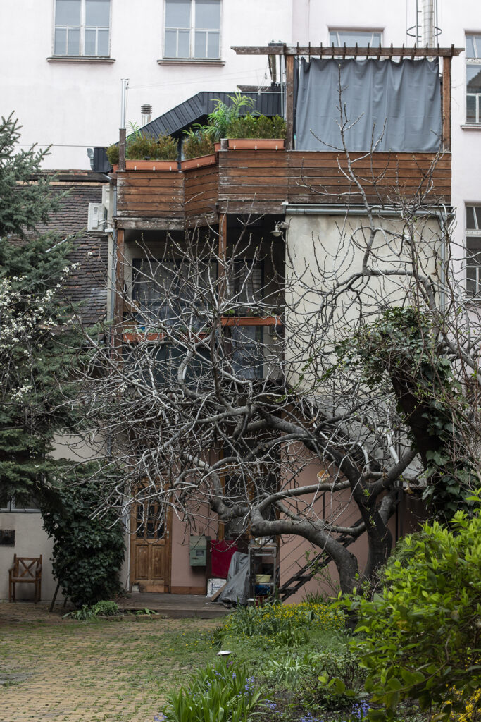 A századfordulós villanegyedben, az Epreskerttel szemben, épült ház később több modern kiegészítést kapott. Utcafronti helyisége az idők során számos funkciót ellátott, jelenleg is működnek vállalkozások ebben az eklektikus környezetben. Nem csak vadregényes kertjét alakítják közösen a lakók, kezük munkája az épületen is megmutatkozik. A Budapest100 hétvégéjén kinyitják az udvart, hogy betekintést kaphassunk közösségi életükbe.