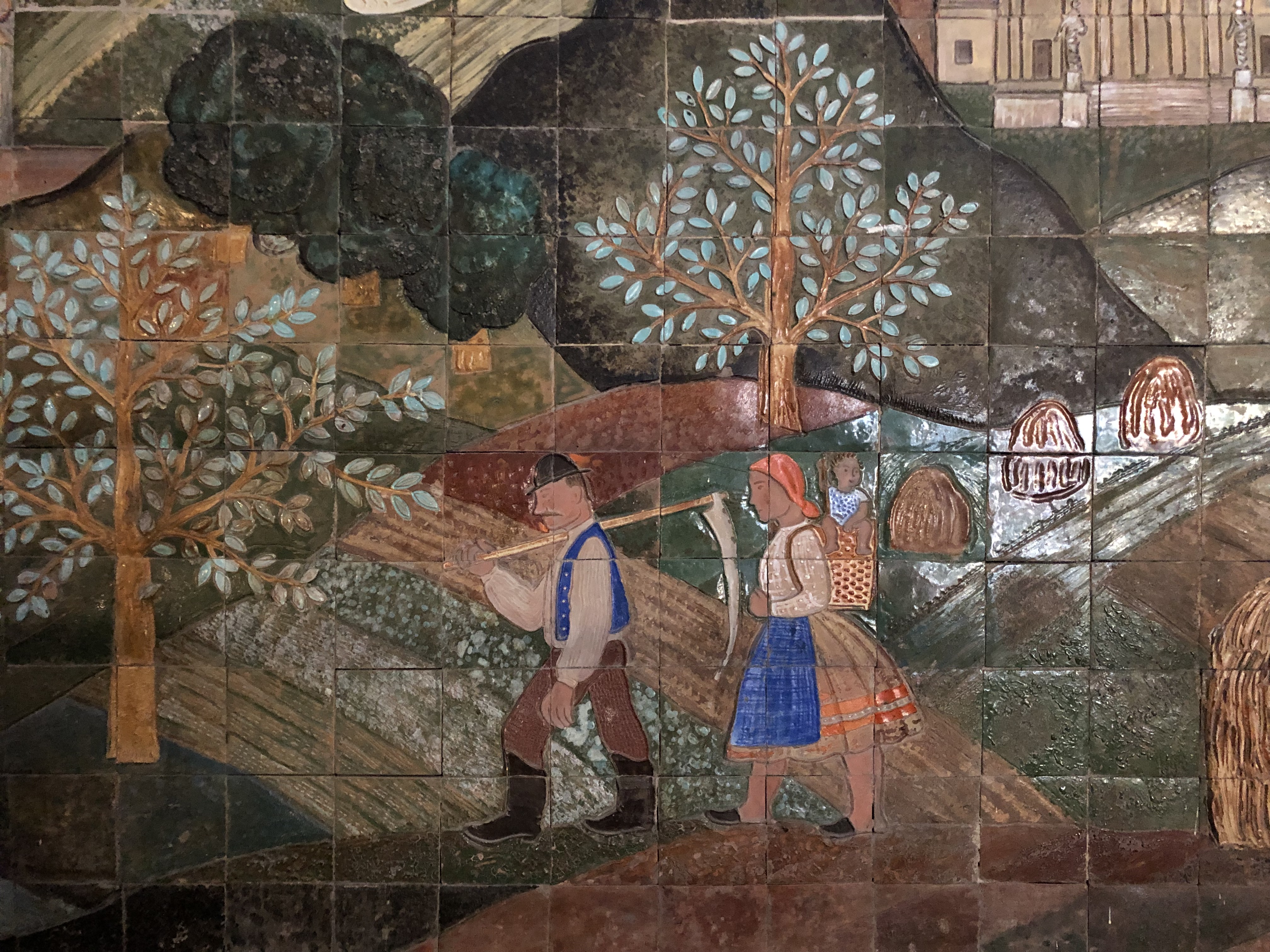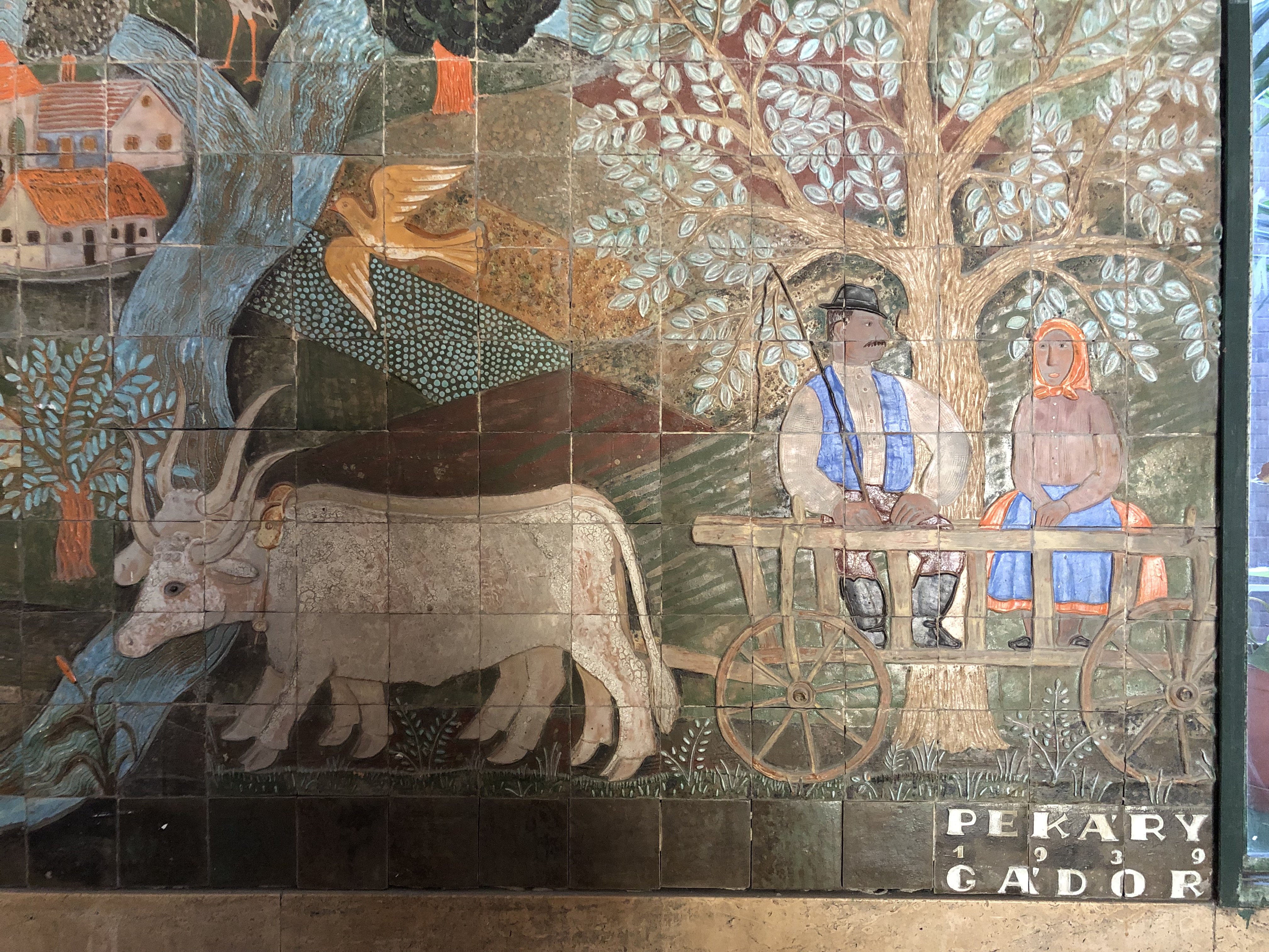 A földszinti előtérben, az olívazöld pécsi Zsolnay-csempékkel körülvett fűtőtest felett, Gádor István figurális kerámiaképe volt mindaddig, amíg a háborús sérülések miatt el nem távolították a falról a 10×10 cm-es csempékből álló, kb. 140×160 cm-es alkotást. Gádor halála előtt négy évvel az utódok a művésztől kapott eredeti festékek felhasználásával, egy fiatal iparművész közreműködésével és Gádor irányításával felújították, pótolták a falikép hiányzó darabjait. Ekkor a művész szignálta is alkotását. A képet egy falemezre felhelyezve, fém kerettel falra akaszthatóvá alakították. A korabeli Tér és Forma lapszámban Művészek Majolika és Agyagipar telepe, Hódmezővásárhely jelöléssel szerepel Gádor alkotása. Az úgynevezett Madách házban (Károly krt. 13-15.) megcsodálható mind a mai napig Gádor István nagyméretű kerámia faliképe, amely Pékáry István festett kartonja alapján készült. Témáját az első bécsi döntés alapján 1938-ban visszacsatolt Felvidék adta: