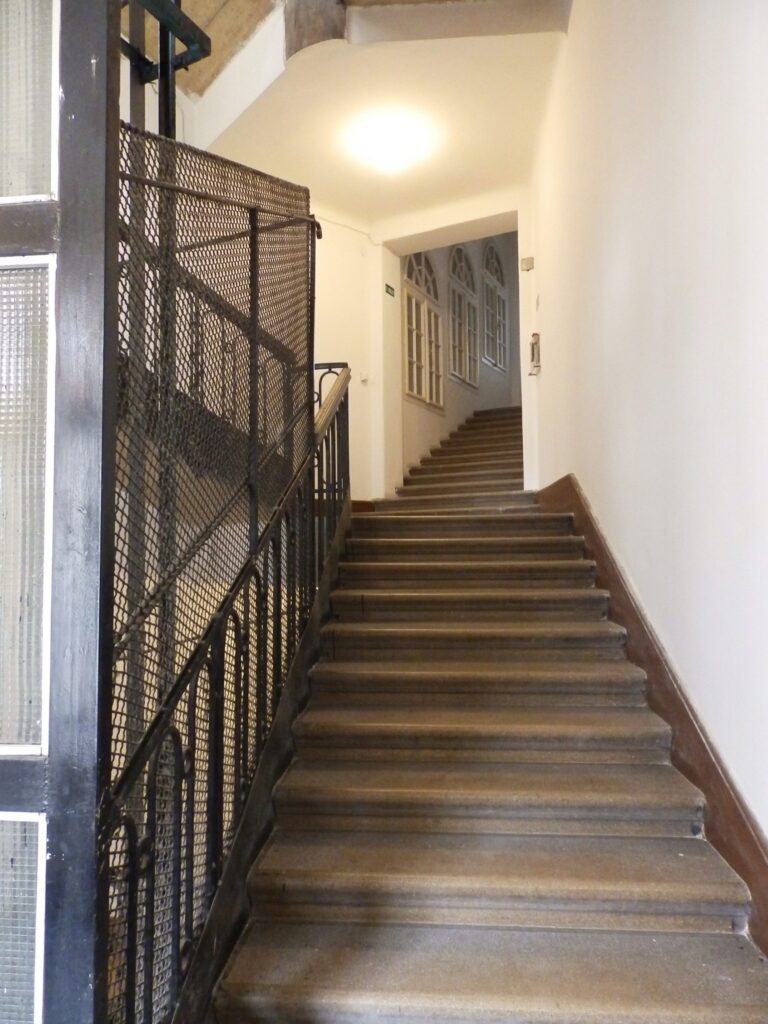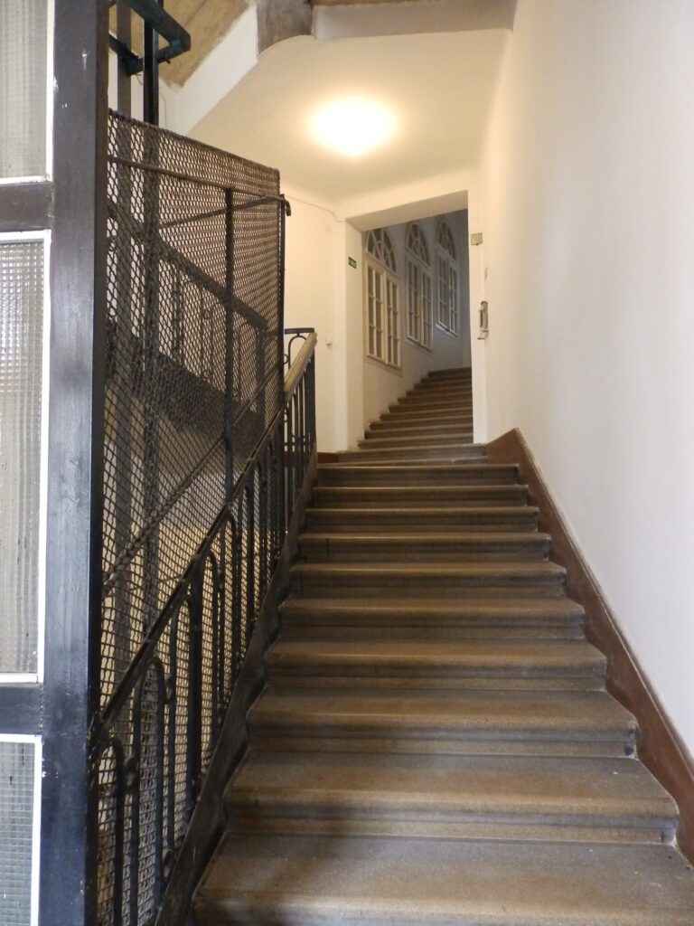 Egy nemes eleganciájú budai ház. „Mindig megigézett a gyönyörű bejárati kapu, a homlokzat domborművei, az oldalkapu felett látható kerék, és az impozáns belső előtér” – vallja a ház egyik lakója. Bár a XX. század neobarokk építészetének remeke, de mintha Európa északi részére tervezték volna élénkvörös falaival és fehér ablakkereteivel. Tisztviselőknek épült, de laktak itt művészek, írók is. Nem szokványos saroktelki épület, látványos külsővel és belső terekkel, körbezárt udvarral. A kapu mellett letűnt korokat idéző varrógépjavító műhely működik.