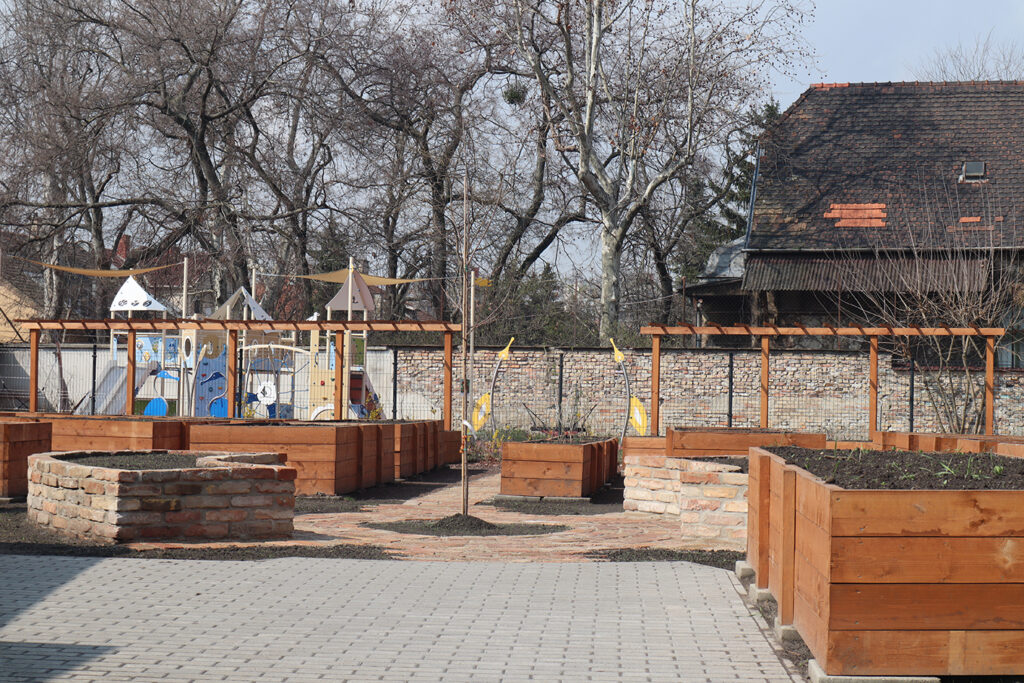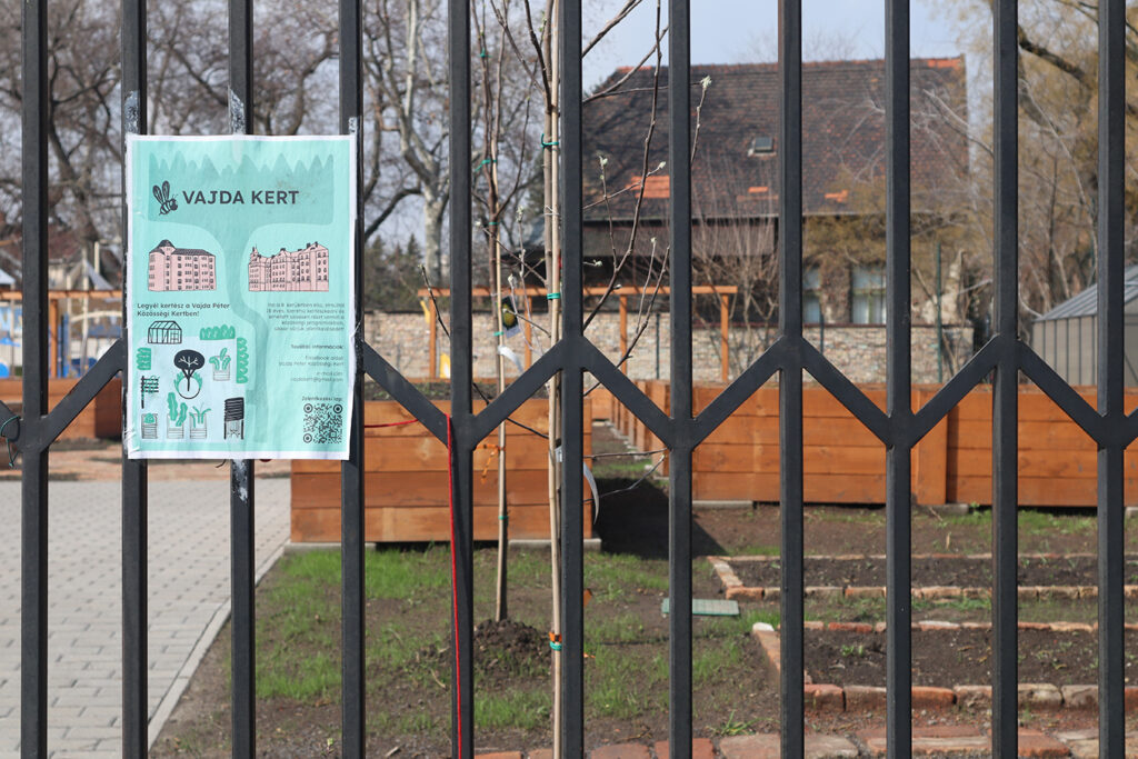 A 2023-as józsefvárosi részvételi költségvetés egyik nyertes ötlete volt egy közösségi kert létrehozása a Vajda Péter Ének-zenei Általános és Sportiskola mögötti üres zöldterületen, ami korábban salakos teniszpályaként üzemelt. A kert kialakítása az önkormányzat által szervezett többalkalmas közösségi tervezési folyamat eredménye, ami egyben lehetővé tette az érdeklődők, a leendő kerthasználók közösségbe szerveződését is. A kert 2025 tavaszán nyílt meg.