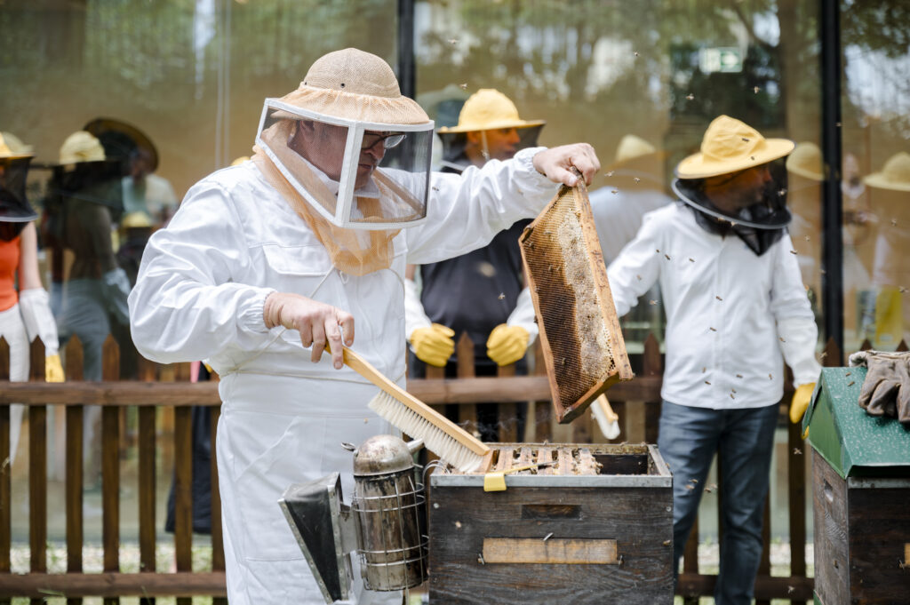 Barátkozás a méhekkel, mézszüret a MOME méhészetében Sisák Eszter alapítványi kabinetfőnökkel és Kutasi Tamás méhésszel
