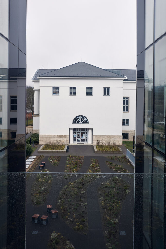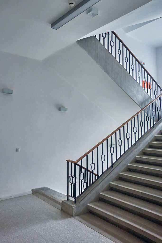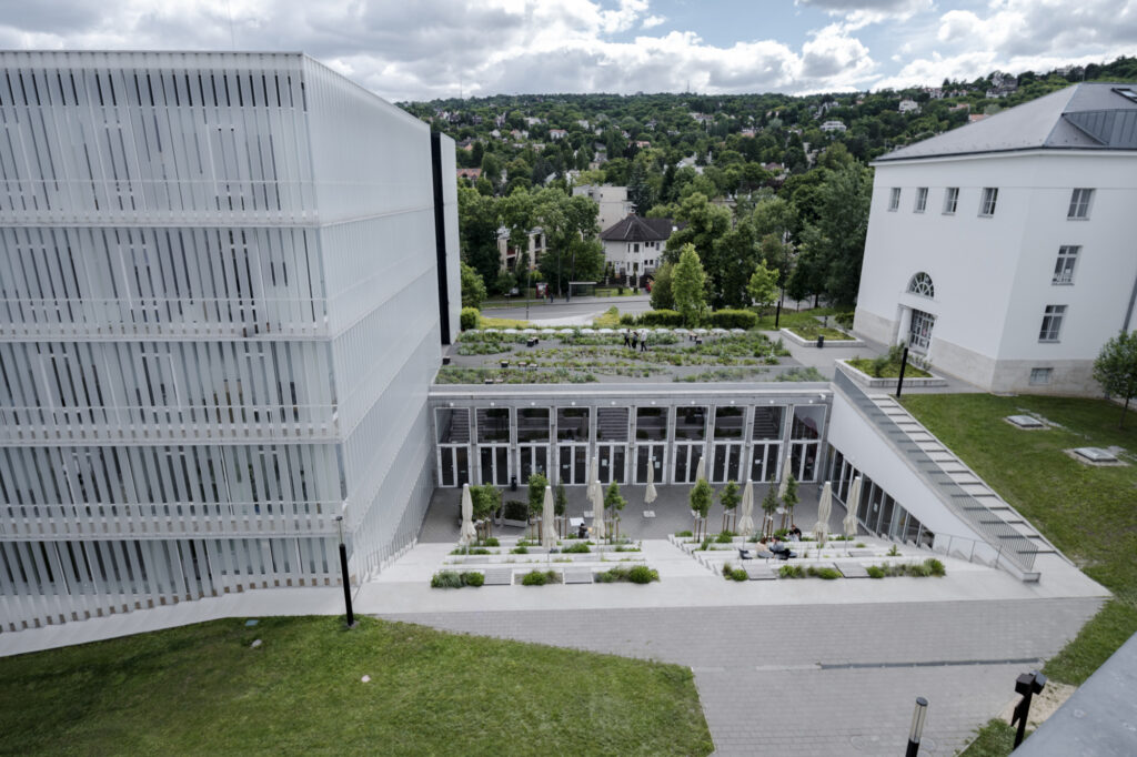 A 3h által tervezett harmadik ütemben a főépület középfolyosója által meghatározott vonal vált a fő közlekedési és szervező tengellyé. Ebben visszaköszön az eredeti Farkasdy-féle koncepció, aki szintén egy vonalra felfűzött, hármas épület-egységben gondolkodott. Az erre merőleges irányok közül a fő belépési pontot azonban már nem a portikuszos kapu jelöli ki, hanem az új, tölcsérszerű betonfelületekkel kialakított főbejárat. A 3h-t – az építészek saját bevallása szerint is – a portikusz függőleges struktúrája inspirálta arra, hogy mindkét új épületen a klasszikus modern egyik legjellegzetesebb gesztusát, a szalagablakot derékszögben elfordítsák, ami által az új homlokzatokat a függőleges irány határozza meg. A CET által tervezett épületek pedig a tömbszerűség és a lyukarchitektúra átvételével vállalnak – talán nem is tudatos – közösséget a szocreál előddel. […]